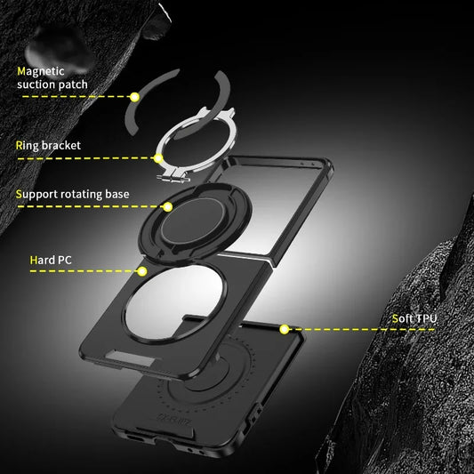 Z Flip 7 Transparent Candy Color Case with Magnetic Rotating Ring & Shockproof Protection